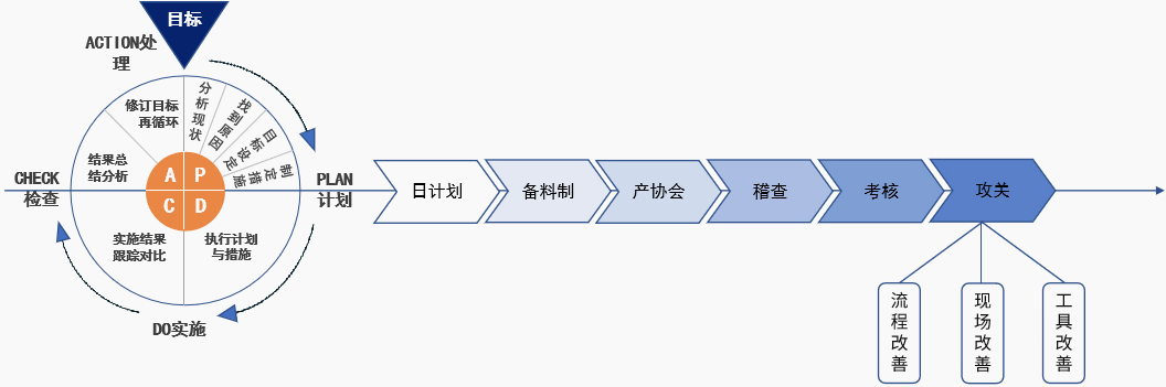 圍繞日計(jì)劃,日產(chǎn)能提升進(jìn)行的全流程動(dòng)靜態(tài)瓶頸疏通動(dòng)作,從實(shí)時(shí)數(shù)據(jù)和問(wèn)題出發(fā),針對(duì)計(jì)劃/物料/設(shè)備/備料/物流/工位/場(chǎng)地/技能/品質(zhì)等全方 位的改善,只為幫助工廠構(gòu)建一條高效率的敏捷生產(chǎn)線。